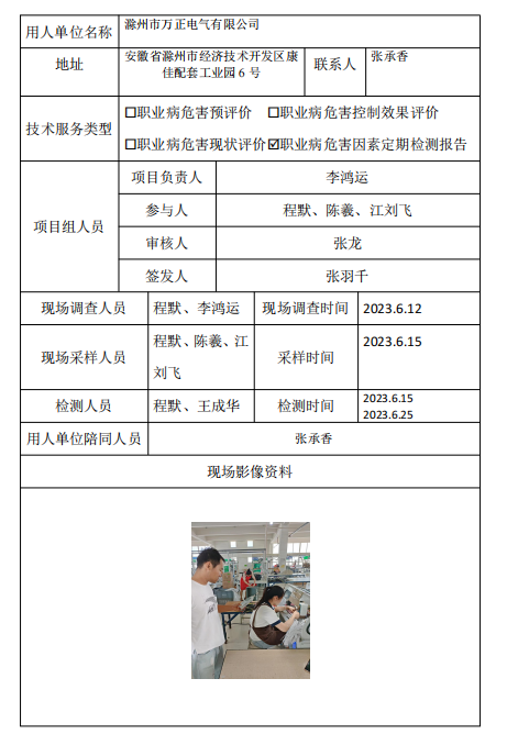 滁州市万正电气有限公司2023年职业病危害因素定期检