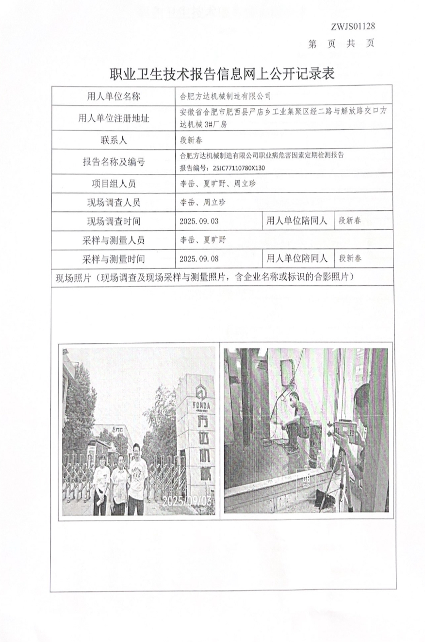 合肥方达机械制造有限公司职业病危害因素定期检测报告
