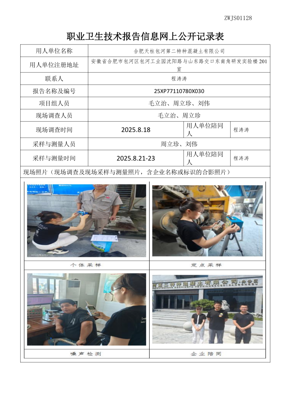 合肥天柱包河第二特种混凝土有限公司职业病危害现状评价报告