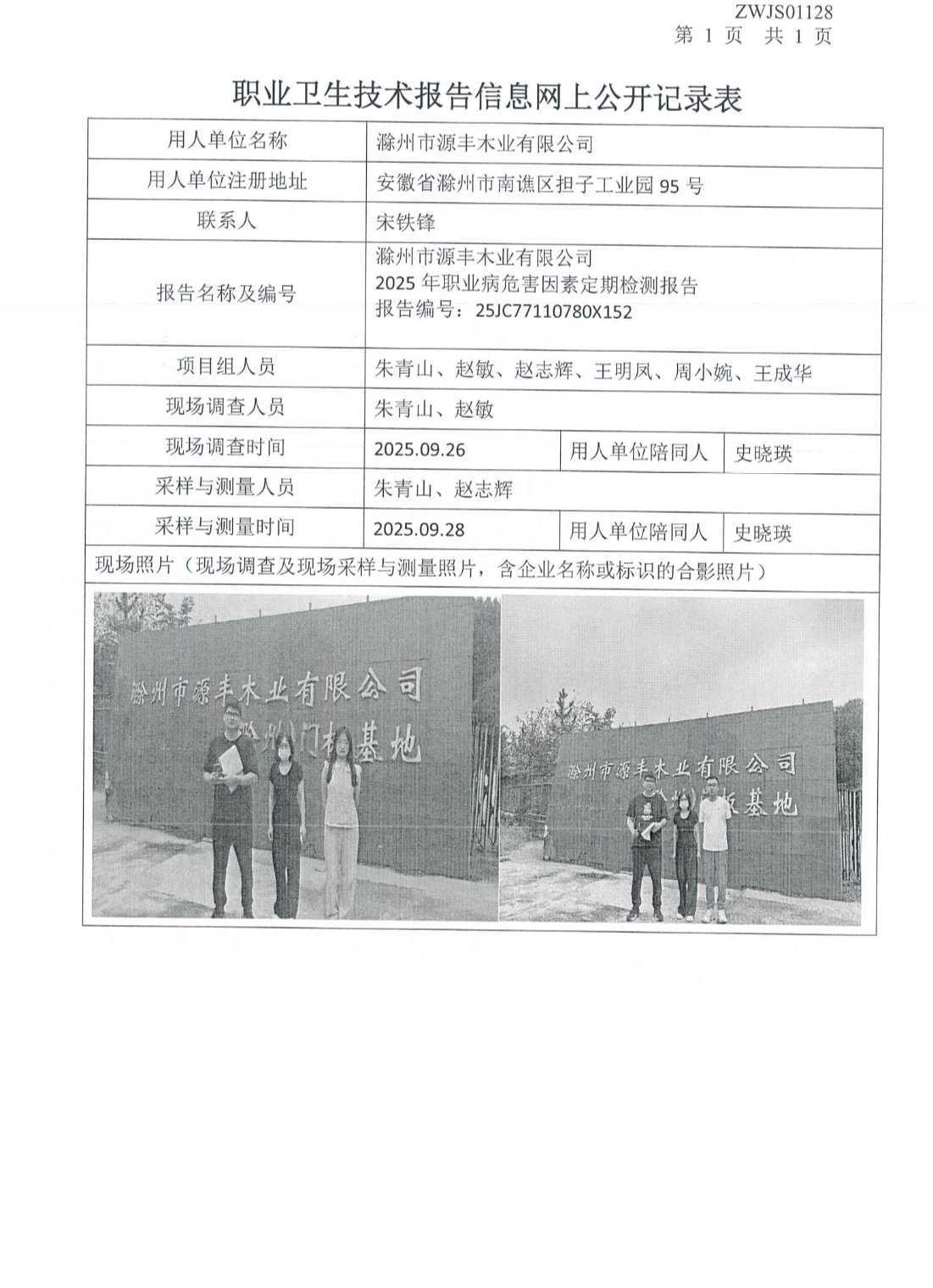 滁州市源丰木业有限公司2025年职业病危害因素定期检测报告