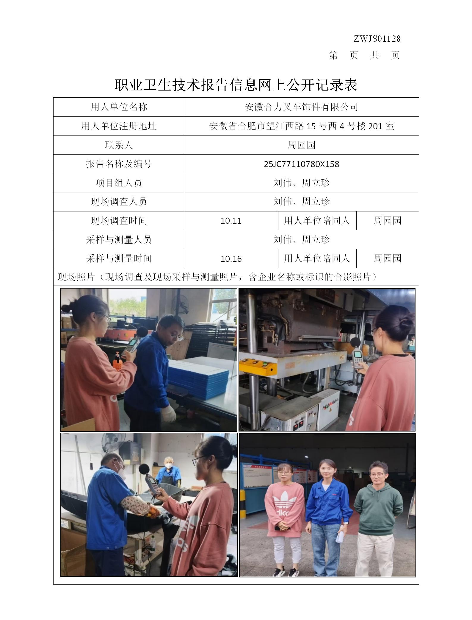 安徽合力叉车饰件有限公司2025年职业病危害因素定期检测报告