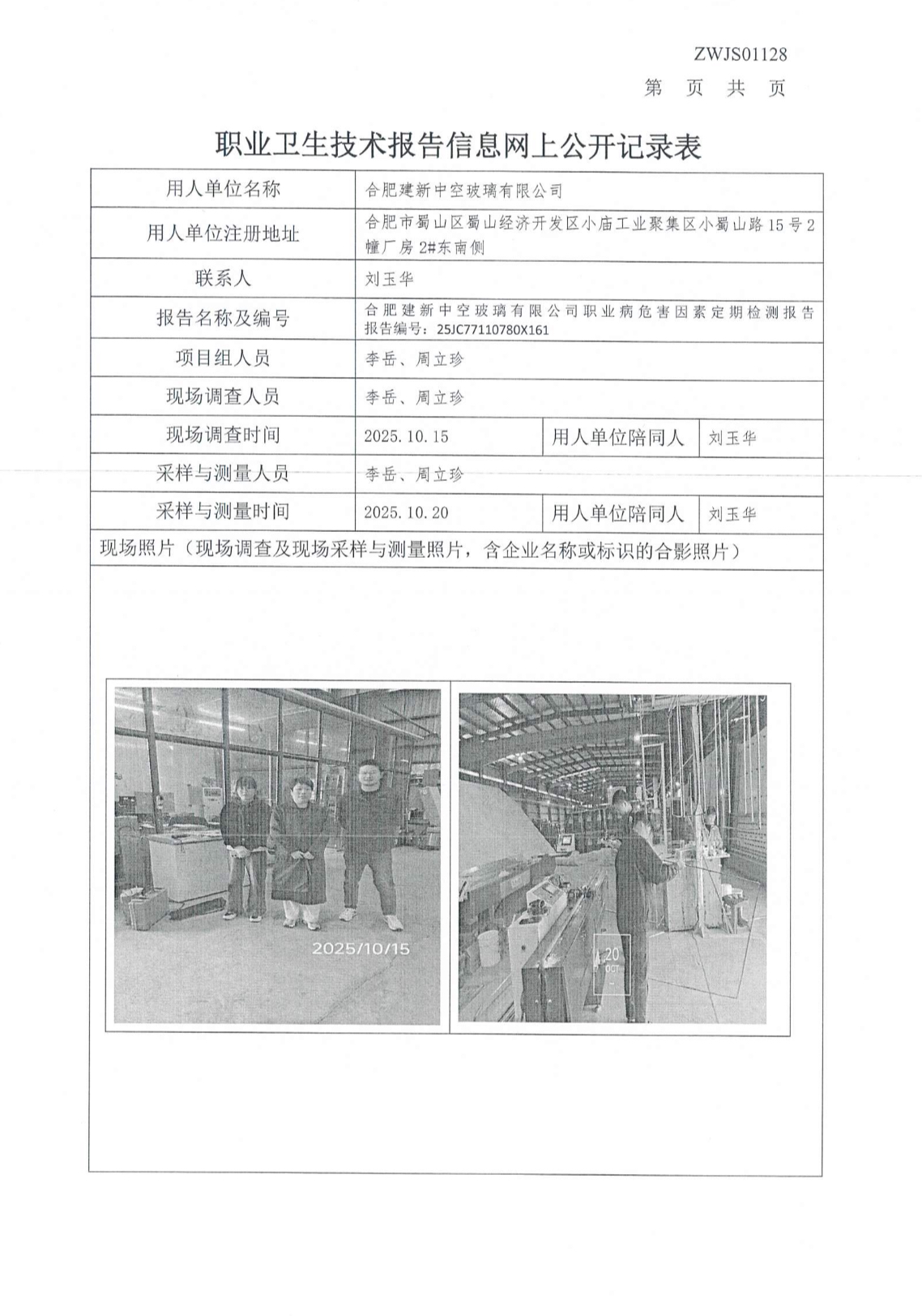 合肥建新中空玻璃有限公司职业病危害因素定期检测报告