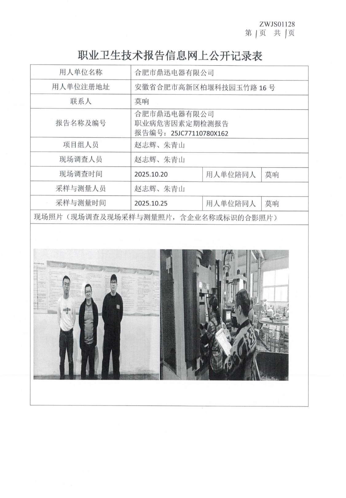 合肥市鼎讯电器有限公司职业病危害因素定期检测报告