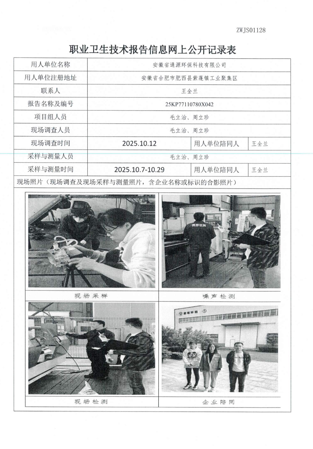 安徽省通源环保科技股份有限公司职业病危害控制效果评价报告