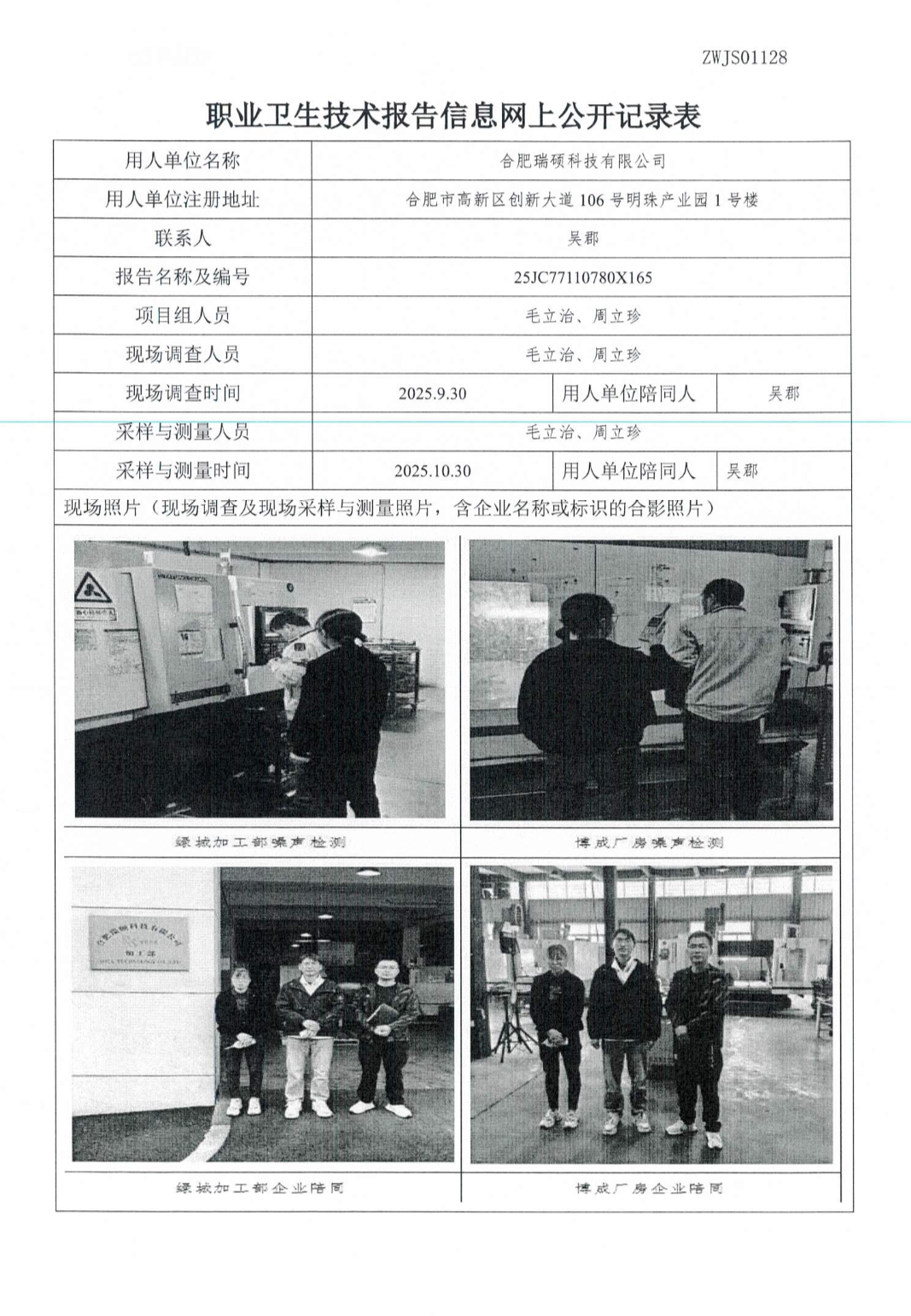 合肥瑞硕科技有限公司职业病危害因素定期检测报告