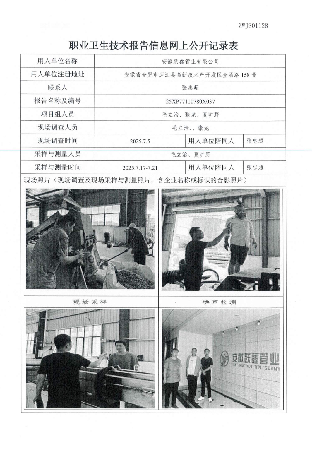 安徽益畅新型建材科技有限公司职业病危害因素定期检测报告