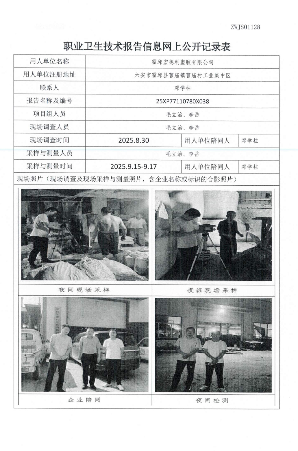 霍邱县宏德利塑胶有限公司职业病危害现状评价