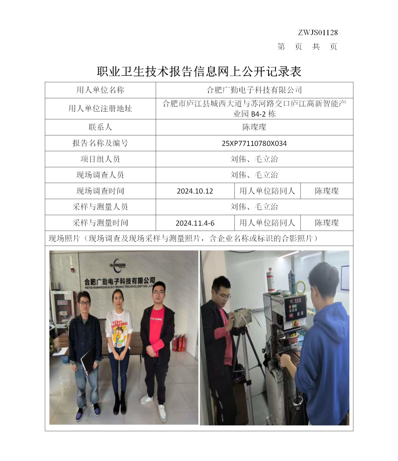 合肥广勤电子科技有限公司职业病危害现状评价报告