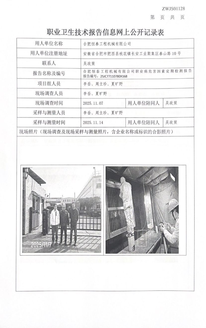 合肥恒泰工程机械有限公司职业病危害因素定期检测报告