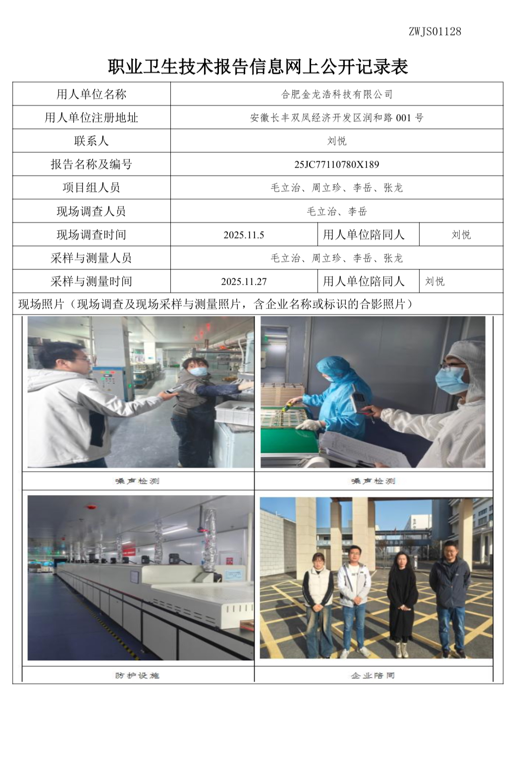 合肥金龙浩科技有限公司职业病危害因素定期检测报告