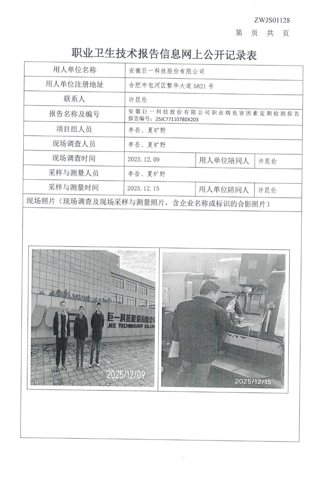 安徽巨一科技股份有限公司职业病危害因素定期检测报告