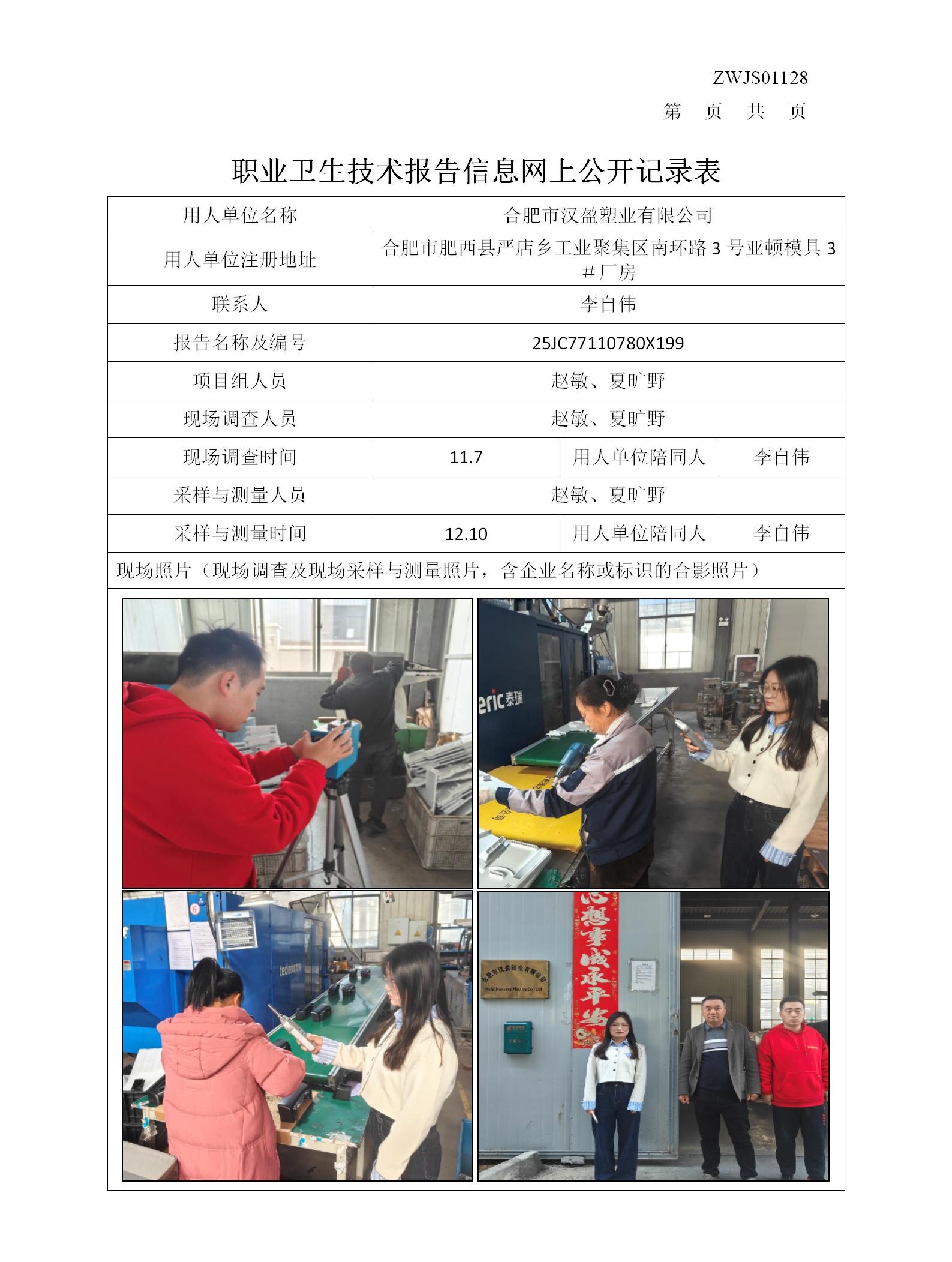 合肥市汉盈塑业有限公司2025年职业病危害因素定期检测报告