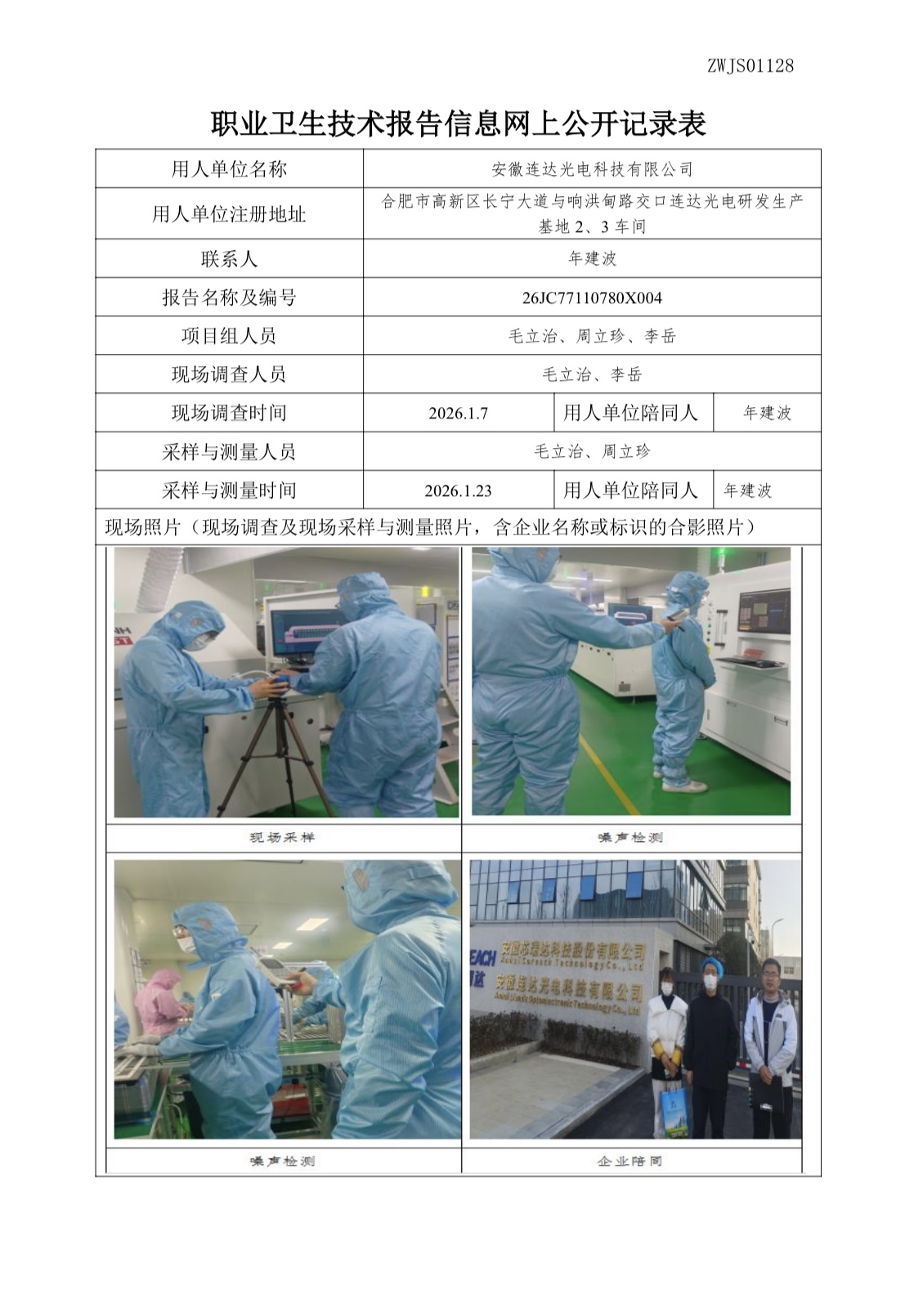 安徽连达光电科技有限公司2026年职业病危害因素定期检测报告