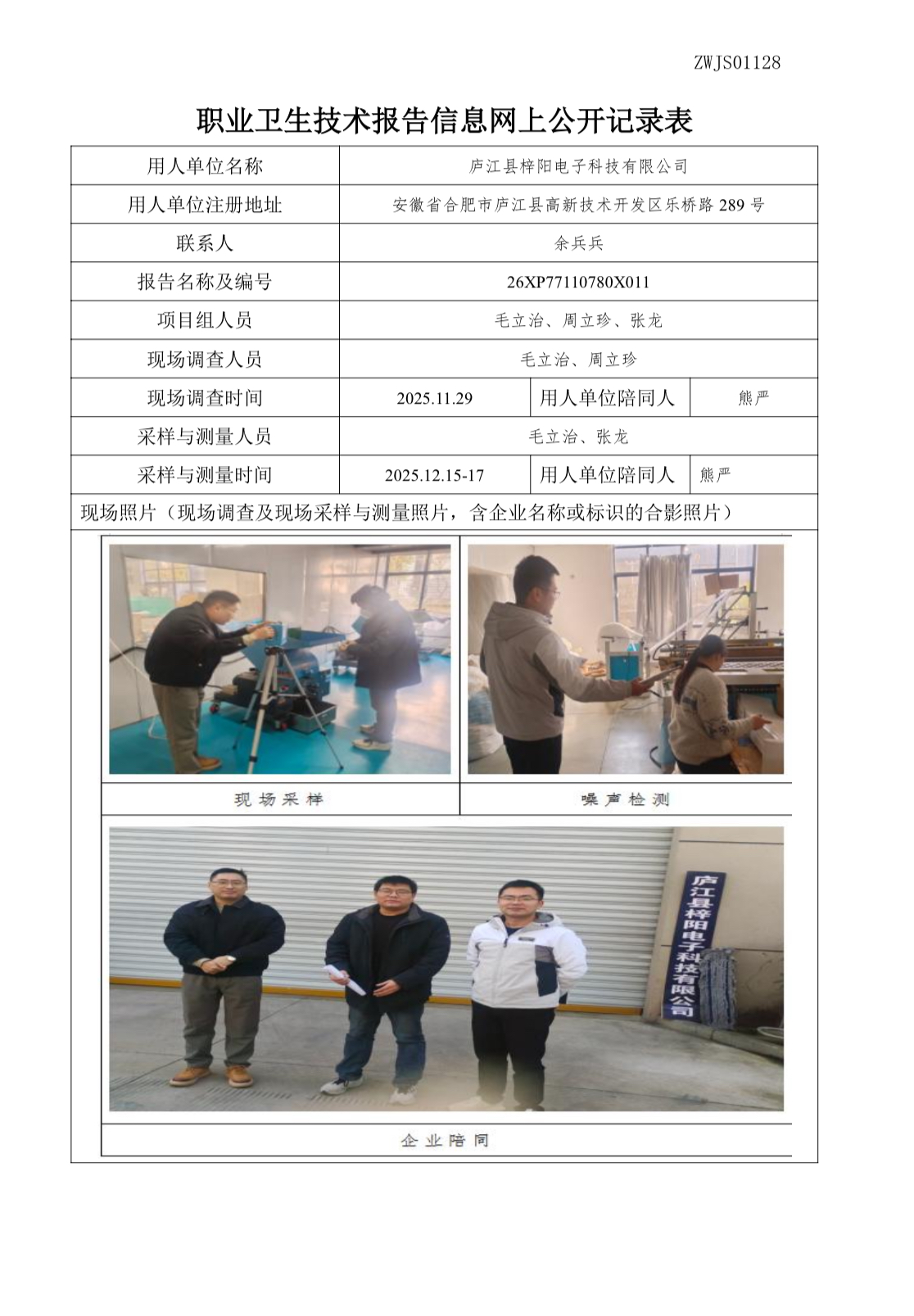 庐江县梓阳电子科技有限公司职业病危害现状评价报告