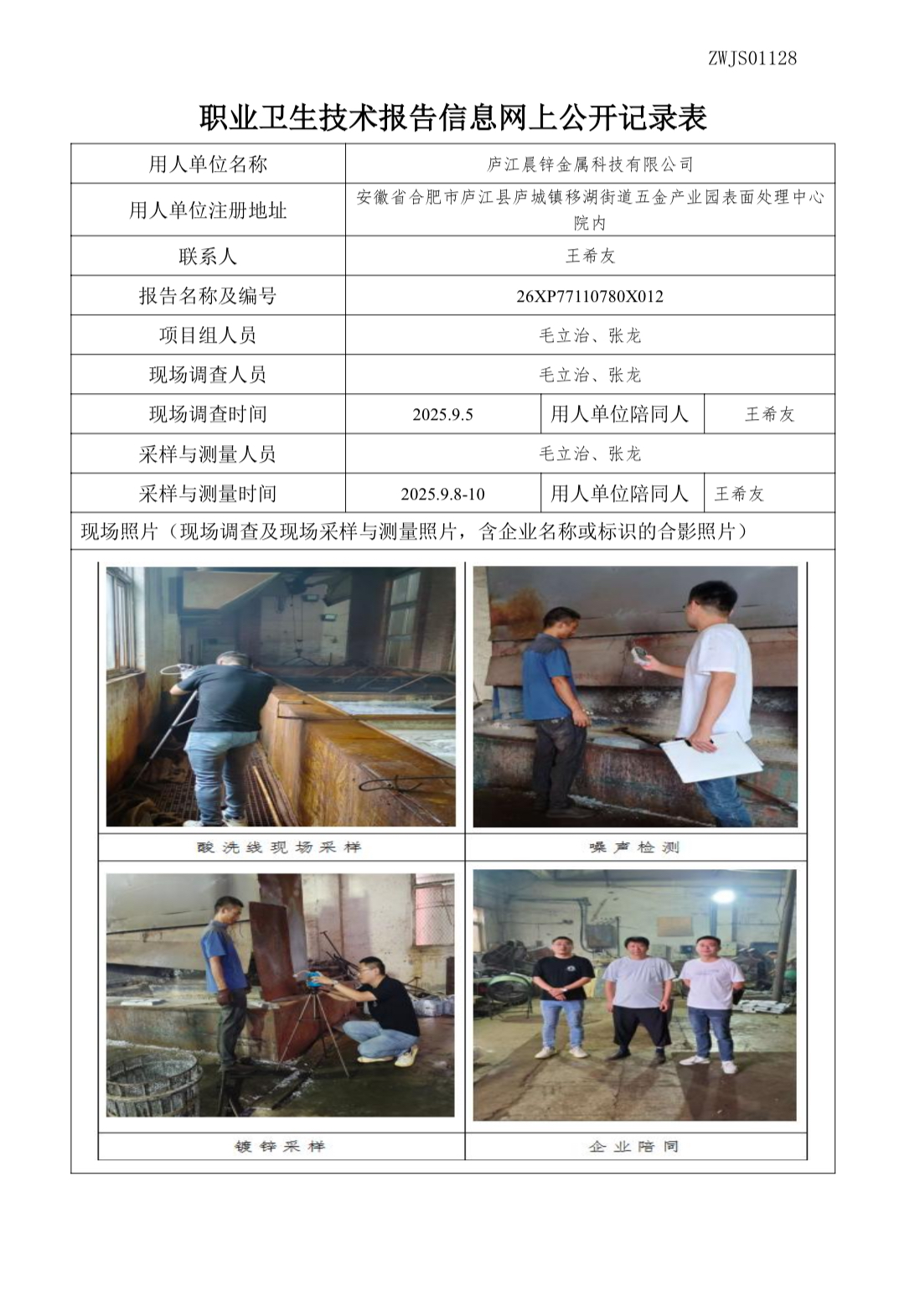 庐江晨梓金属科技有限公司职业病危害现状评价报告